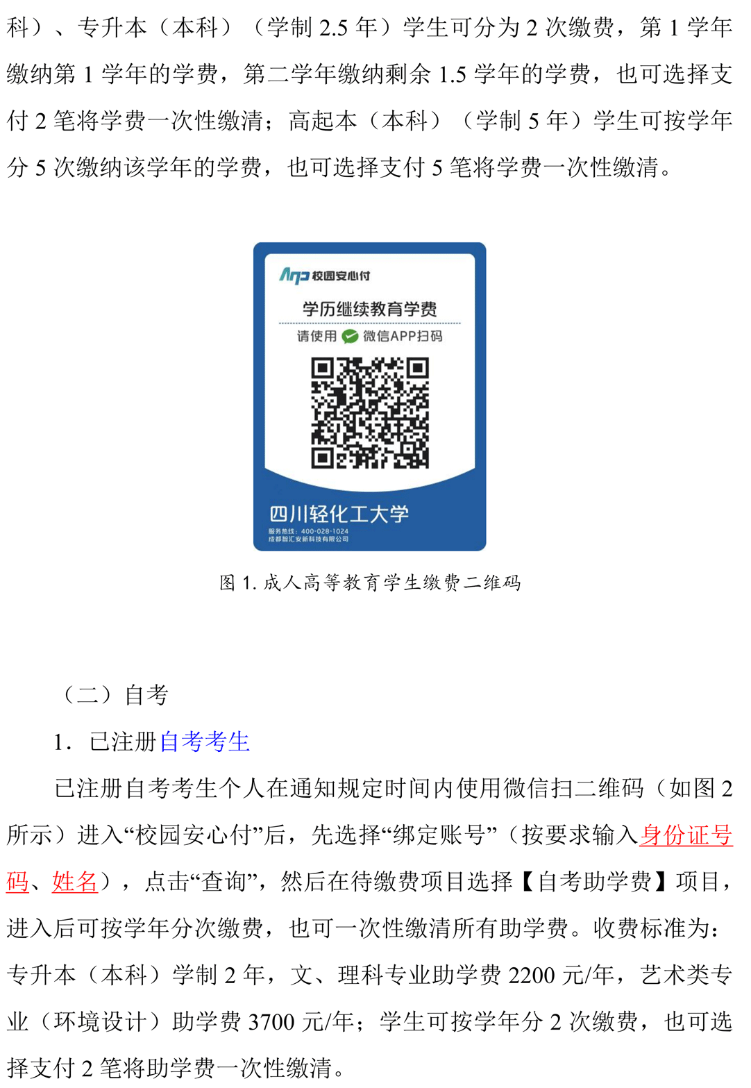 >>四川轻化工大学关于公告高等学历继续教育学费缴纳方式、流程及收费标准的通知